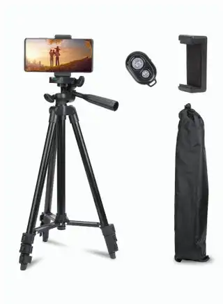 51 Inch Extendable Phone Tripod and Camera Stand with Bluetooth Remote and Clip