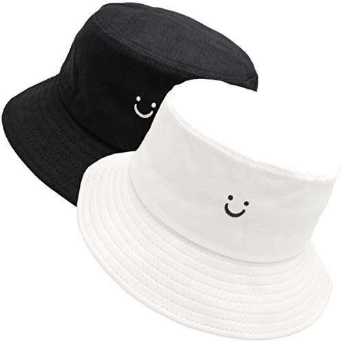 55cube Bucket Hat Packable Summer Travel Unisex Fisherman Hat, 2pack White/Black Smiling Face, One Size