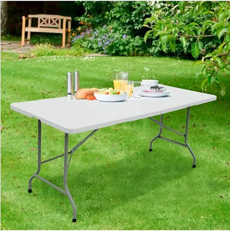 6 Foot Plastic Folding Table - Folds In Half With Carrying Handle Rectangular - Lightweight And Portable - White Resin With Sturdy Steel Frame AMZ-Z7046AE86F723A8BBB420Z — Price History & Tracker | DeserTracker