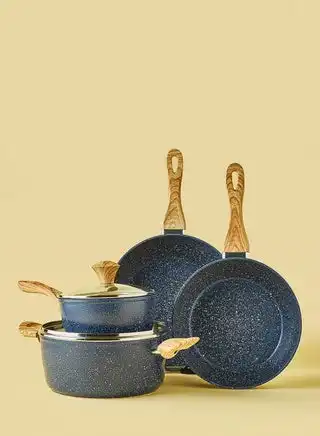 6-Piece 6 Piece Cookware Set - Aluminium Pots And Pans - Non-Stick Surface - Wood Finish Handles - Tempered Glass Lids - PFOA Free - Frying Pan, Casserole With Lid, Saucepan With Lid Blue — Price History & Tracker | DeserTracker