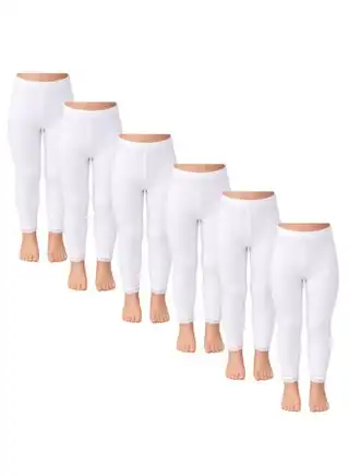 6 Pieces Girls 100% Cotton Full Length Inner Leggings with Elastic Waistband – White