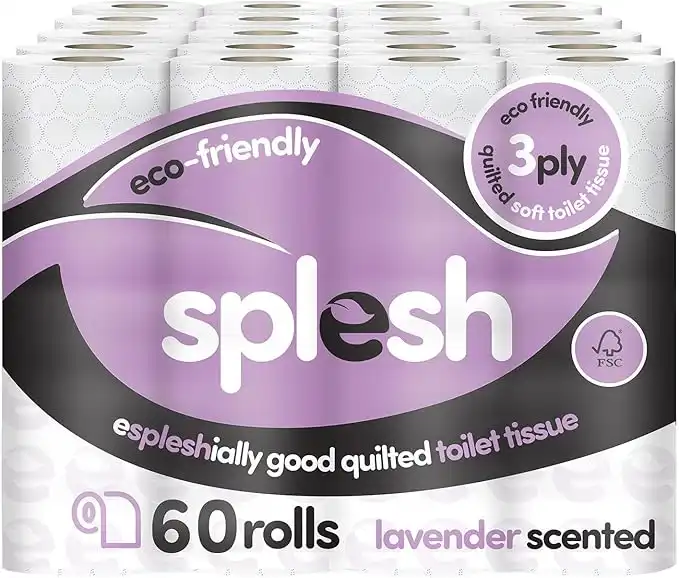 60 Splesh Toilet Tissue Rolls - Eco-Friendly, Soft & Quilted 3-Ply Toilet Paper, Made from Sustainably Sourced Pulp - Lavender Fragrance (60 Pack) — Price History & Tracker | DeserTracker