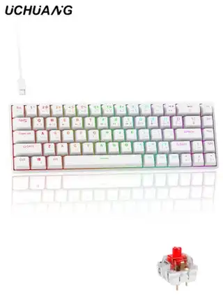 68-Key English Arabic Mechanical Keyboard, Red Switch Hybrid Light Compact Mini Wired Keyboard for PC, Mac E-sports Portable Gaming Keyboard - White