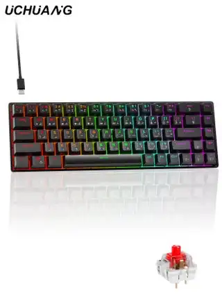 noon.com68-Key English Arabic Mechanical Keyboard, Red Switch Hybrid Light Compact Mini Wired Keyboard for PC, Mac E-sports Portable Gaming Keyboard - Black Keyboard