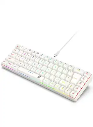 noon.comROCK POW 60% Wired Gaming Keyboard RGB Backlit Mini Keyboard Waterproof Small Ultra-Compact 68 Keys Keyboard for PC/Mac Gamer Typist Travel Easy to Carry on Business Trip White