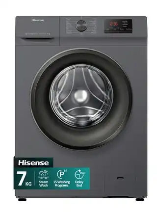 noon.com7Kg Front Loading Washing Machine, 1200RPM, 15 Wash Programs, Steam Wash, Quick Wash, Drum Clean, Delay End, Self-Diagnostic fault Finding, 7 kg WFVB7012MT Titanium