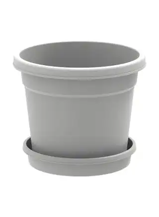 8" Round Flowerpot with Tray Grey