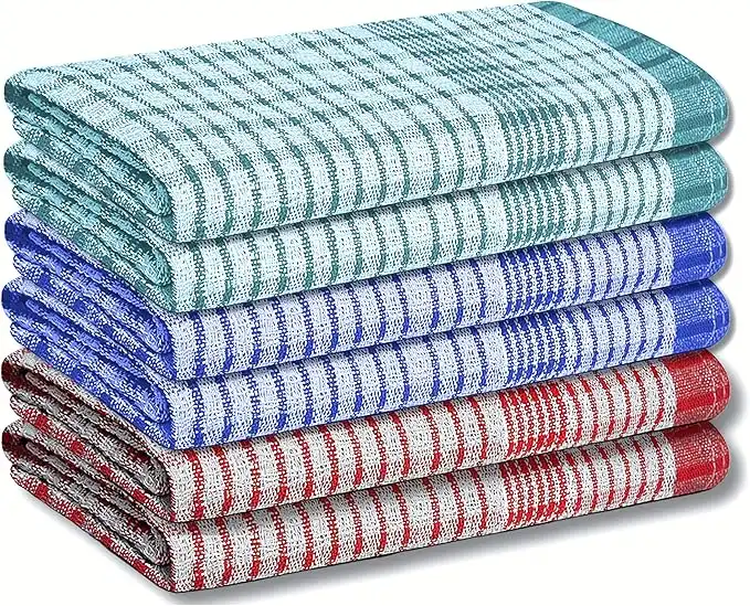 A & B TRADERS Wonderdry Tea Towels Kitchen Mix Pack of 6, Cotton Absorbent Long Lasting Catering Bar Dish Towel (Mix Pack of 6)