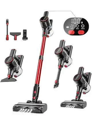 A27R Cordless Vacuum Cleaner, 30Kpa Powerful Suction Stick Vacuum with LED Display, 3 Modes Suction, Anti-Tangle & 1.5L Dust Cup, 8-in-1 Lightweight Vacuum for Hardwood Floor/Carpet/Pet Hair, Red — Price History & Tracker | DeserTracker