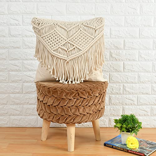 Aashiyana Sajona Cotton Macrame Handmade Knit Floor Cushion Throw Pillow Cover (Large - 16x16 inch, Beige) (Design603)