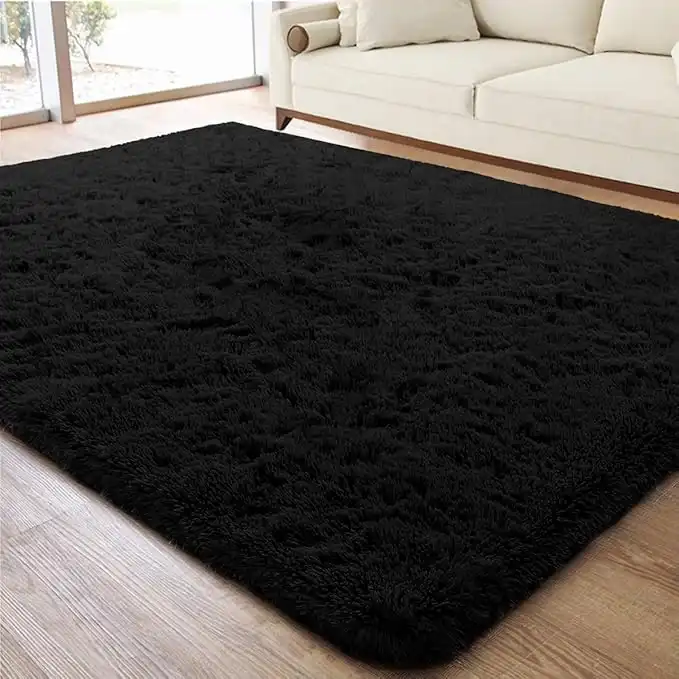 ACTCUT Super Soft Indoor Modern Shag Area Rugs Fluffy Beding Room Shaggy Carpets Dining Living Room Nursery Rug 4' x 5', Black — Price History & Tracker | DeserTracker