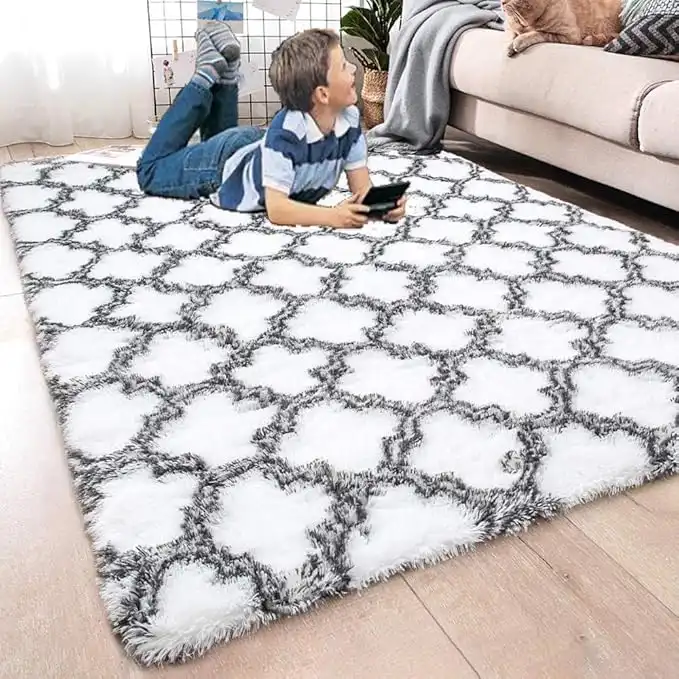 ACTCUT Super Soft Indoor Modern Shag Area Silky Smooth RugsFluffy Anti-Skid Shaggy Area Rug Dining Living Room Carpet Comfy Bedroom Floor 4- Feet by 5- Feet (WhiteTrellis) — Price History & Tracker | DeserTracker