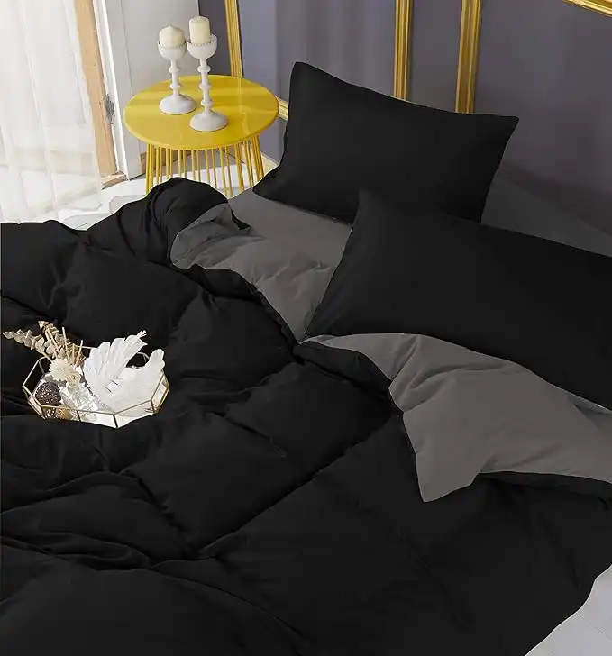 Adam Home 4PCS Complete Reversible Duvet Cover & Fitted Sheet Soft Micro Fiber Bedding Sets by TTO (Black Grey, Superking) — Price History & Tracker | DeserTracker