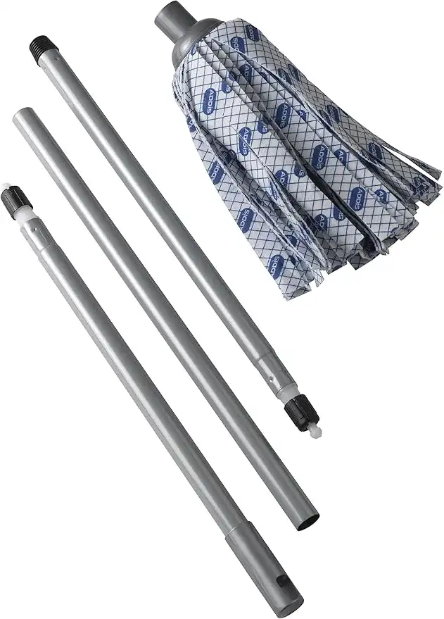 Addis Cloth Mop With 3 Piece Handle In Blue, White And Grey