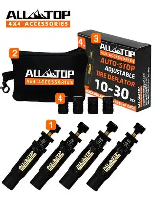 Adjustable Auto-Stop Tire Deflator Valve Kit, 10-30 PSI Air Down Tool Offroad Accessories, 4 Pcs