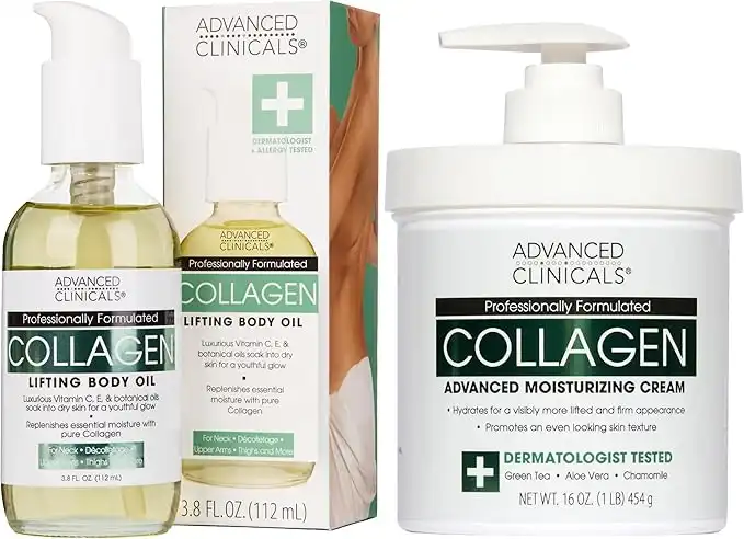 amazon.aeAdvanced Clinicals Unscented Collagen Cream Face Moisturizer & Body Lotion + Collagen Body Oil Skincare 2pc Set For Women & Men Helps Reduce Appearance Of Crepey Skin, Wrinkles, & Dry Skin, 2PC Set