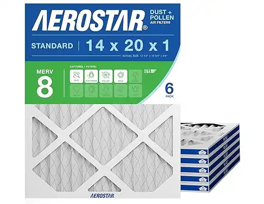 Compare all Aerostar 14x20x1 MERV 8 Pleated Air Filter 6 Pack prices