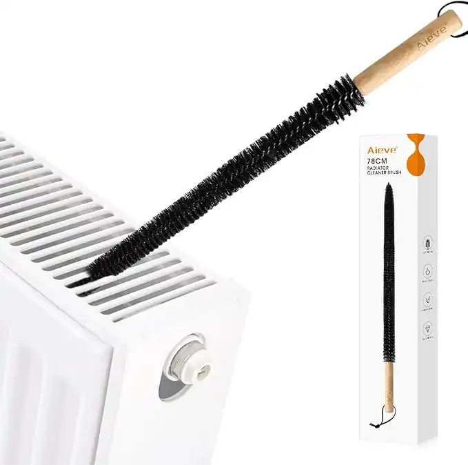 Aieve Radiator Cleaner Brush, Radiator Brushes for Cleaning, Long Flexible Radiator Duster with Wood Handle for Radiator (78CM)