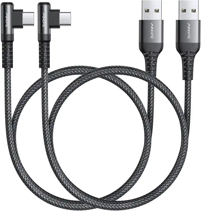 AINOPE [2 Pack 1.6FT Type C Cable, 3.1A Type C Charger Fast Charging, Right Angle Nylon Braided USB to USB C Cable Compatible with Galaxy S22 S21 S10, Note 10 9 A51 LG G8 G7 Charging Cord