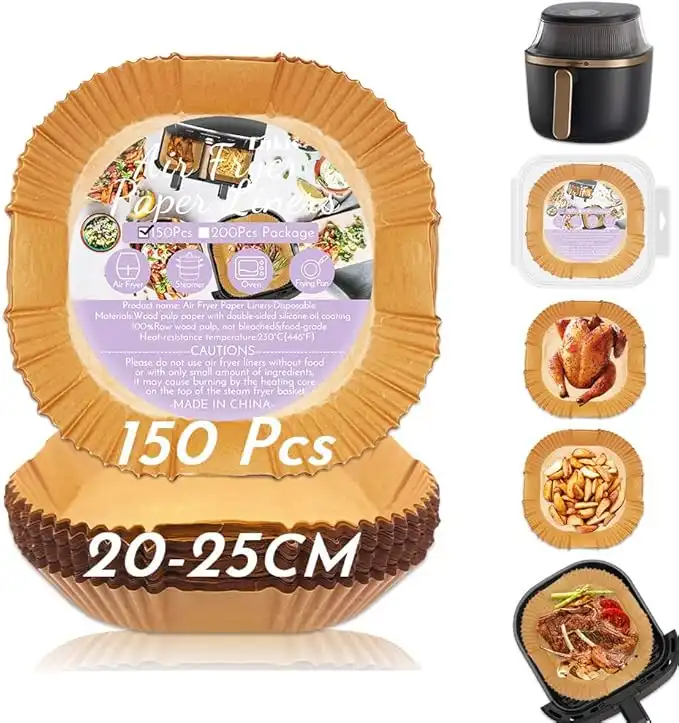 amazon.aeAir Fryer Liners, 150pcs Non-Stick BPA-Free 9.8 inch/25 * 4.5CM Square Disposable Parchment Paper Liner, Great Value Accessory for 5.5L-7.5L Air Fryer (Large 20-25CM)