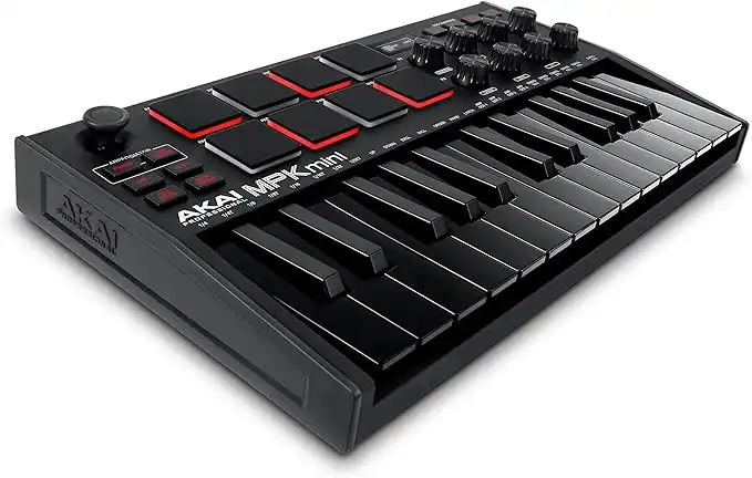 Akai Professional Mpk Mini Mk3 | 25 Key USb Midi Keyboard Controller With 8 Backlit Drum Pads, Knobs And MUSic Production Software Included - White