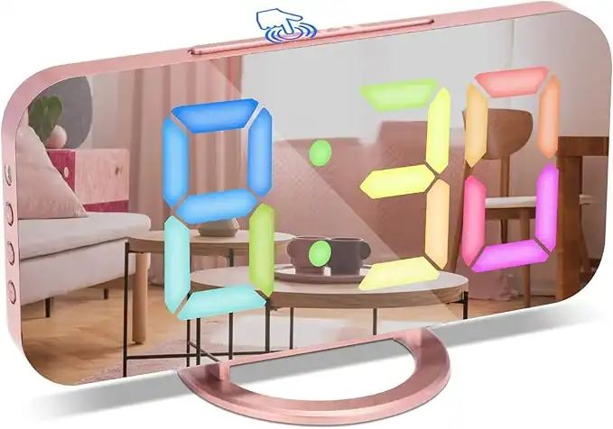 amazon.aeAlarm Clock with Dimmable LED Display, Digital Clock, Digital Alarm Clock with Colour Fonts, Alarm, Snooze, 3 Dimmer Modes, Alarm Clocks Bedside Mains Powered, Bedside Clock for Bedroom-Rose Gold