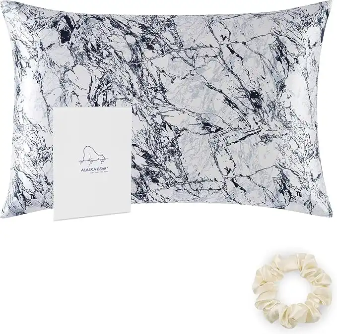 amazon.aeALASKA BEAR Natural Silk Pillowcase 100 Percent Organic Mulberry Silk Slip 22 Momme King Size (1pc, White Marble Pattern)