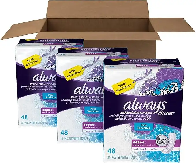 Always Discreet Incontinence Pads Maximum Absorbency Regular Length 144 Count