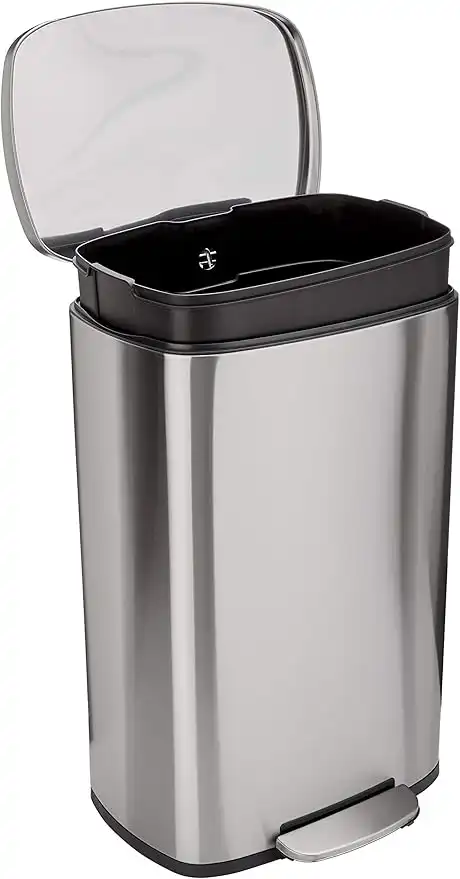 Amazon Basics Rectangular Kitchen Bin With Steel Bar Pedal, Soft-Closing Mechanism For Home and Office Use, 50 Liter/13.2 Gallon, Satin Nickel Finish