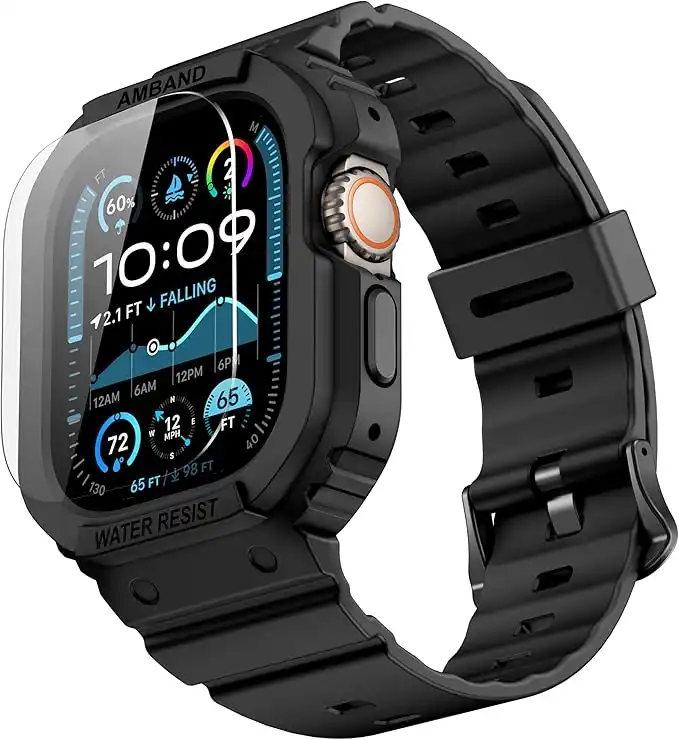 amazon.aeamBand M1 Rugged Case with Strap Compatible with Apple Watch Series 8/7 45mm, Durable TPU Military Sport Wristband with Bumper Protective Cover Designed for iWatch 6/SE/5/4/3/2/1 44mm 42mm Men
