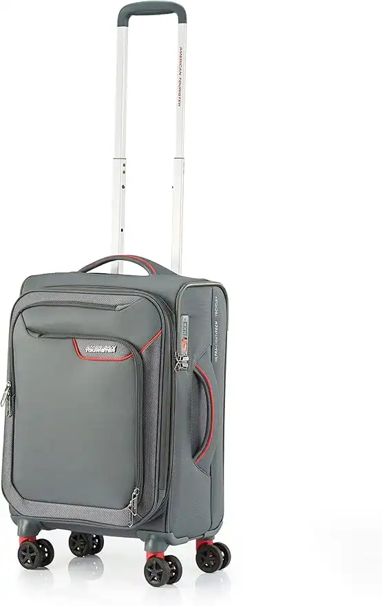 American Tourister APPLITE 4 ECO Soft Cabbin Luggage 55 CM GREY/RED, Red, Cabin, Applite 4 Eco is lightweight and packed with features including expander and Duosaf security zipper
