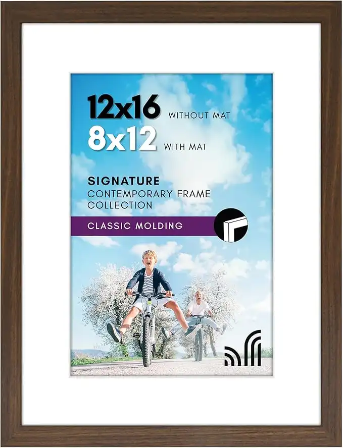 Americanflat 12x16 Picture Frame with Shatter-Resistant Glass - Use as 8x12 Frame with Mat or 12x16 Frame Without Mat - Signature Collection - Photo Frame for Wall Display - Walnut — Price History & Tracker | DeserTracker