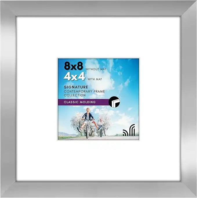 amazon.aeAmericanflat 8x8 Picture Frame in Silver - Use as 4x4 Picture Frame with Mat or 8x8 Frame Without Mat - Wide Frame, Shatter Resistant Glass, Built-in Easel, Hanging Hardware for Wall and Tabletop
