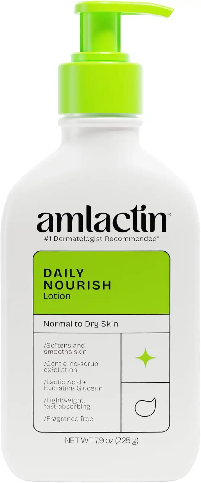 AmLactin Daily Moisturizing Lotion for Dry Skin – 7.9 oz Pump Bottle – 2-in-1 Exfoliator - Body Lotion with 12% Lactic Acid, Dermatologist-Recommended (Packaging May Vary)