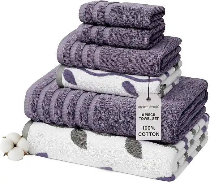 Amrapur Overseas 6-Piece Yarn Dyed Organic Vines Jacquard/Solid Ultra Soft 500GSM 100% Combed Cotton Towel Set [Grey Lavender] — Price History & Tracker | DeserTracker