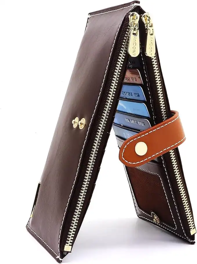 ANDOILT Women's Genuine Leather Wallet RFID Blocking Credit Card Holder Zipper Purse Cell Phone Handbag — Price History & Tracker | DeserTracker