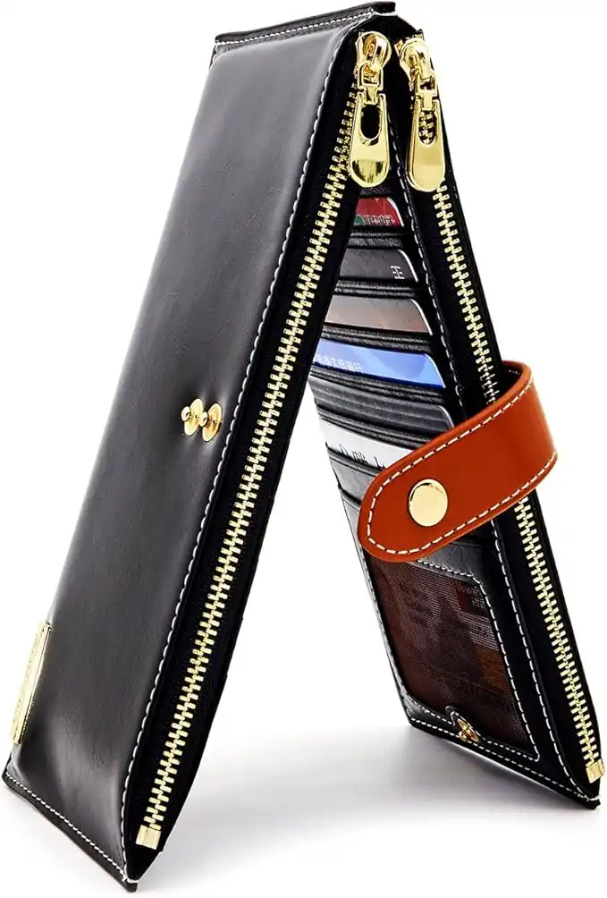 ANDOILT Women's Genuine Leather Wallet RFID Blocking Credit Card Holder Zipper Purse Cell Phone Handbag — Price History & Tracker | DeserTracker