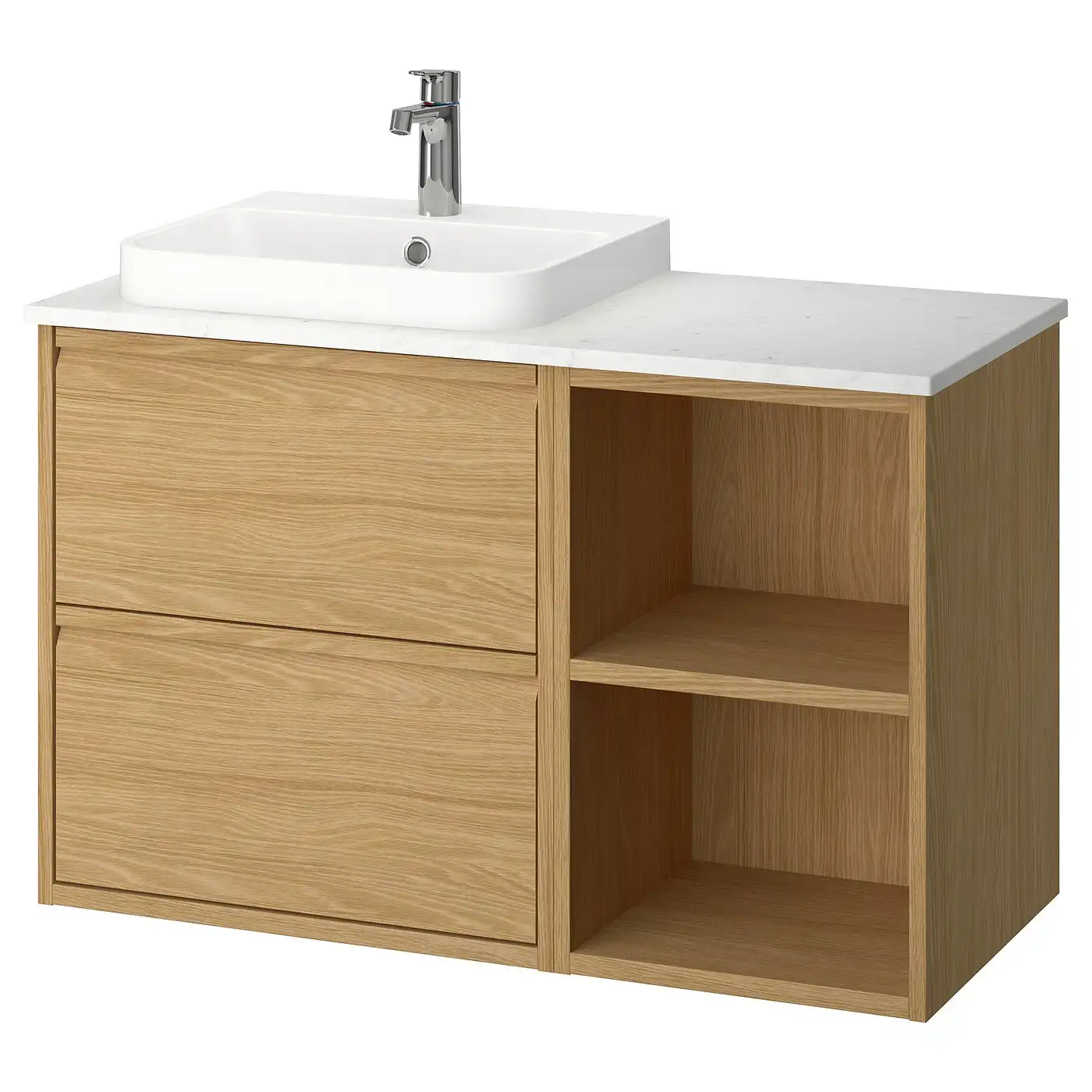 ÄNGSJÖN / BACKSJÖN Wash-stand/wash-basin/tap - oak effect/white marble effect 102x49x71 cm