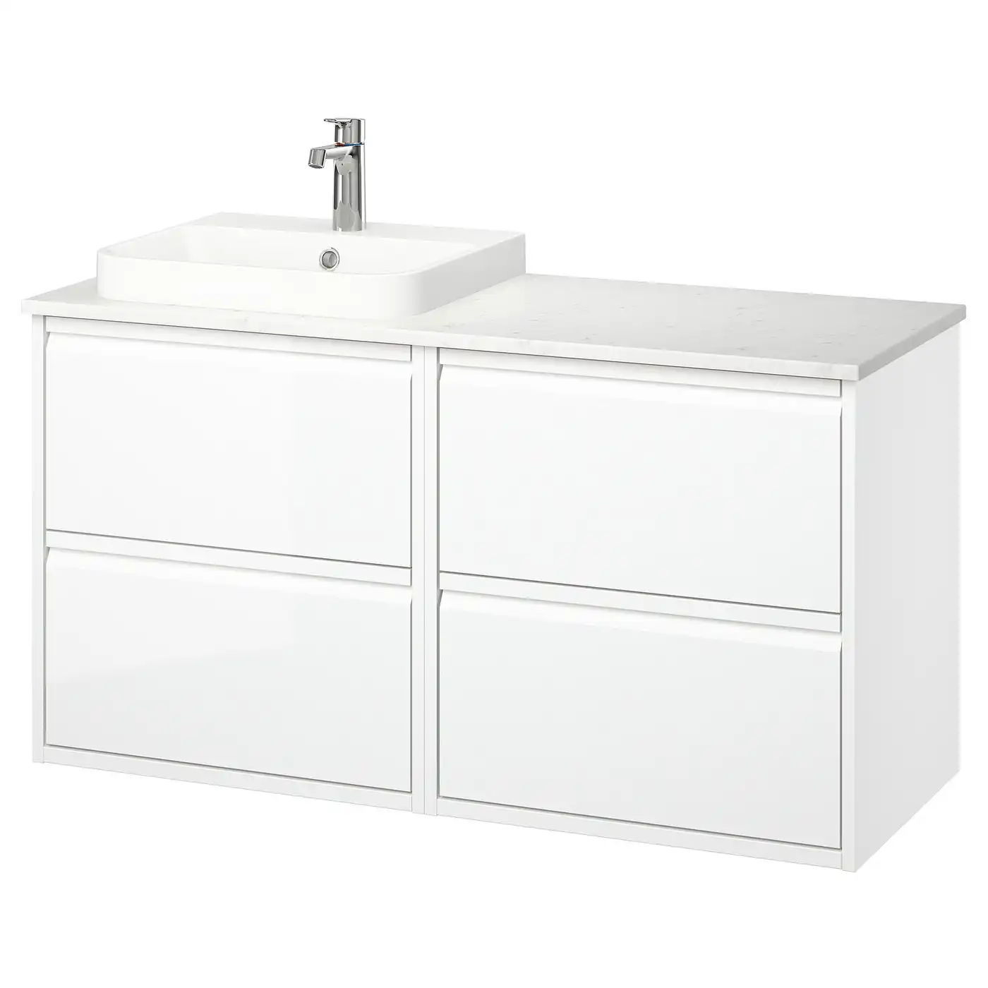 ÄNGSJÖN / BACKSJÖN Wash-stand/wash-basin/tap - high-gloss white/white marble effect 122x49x71 cm
