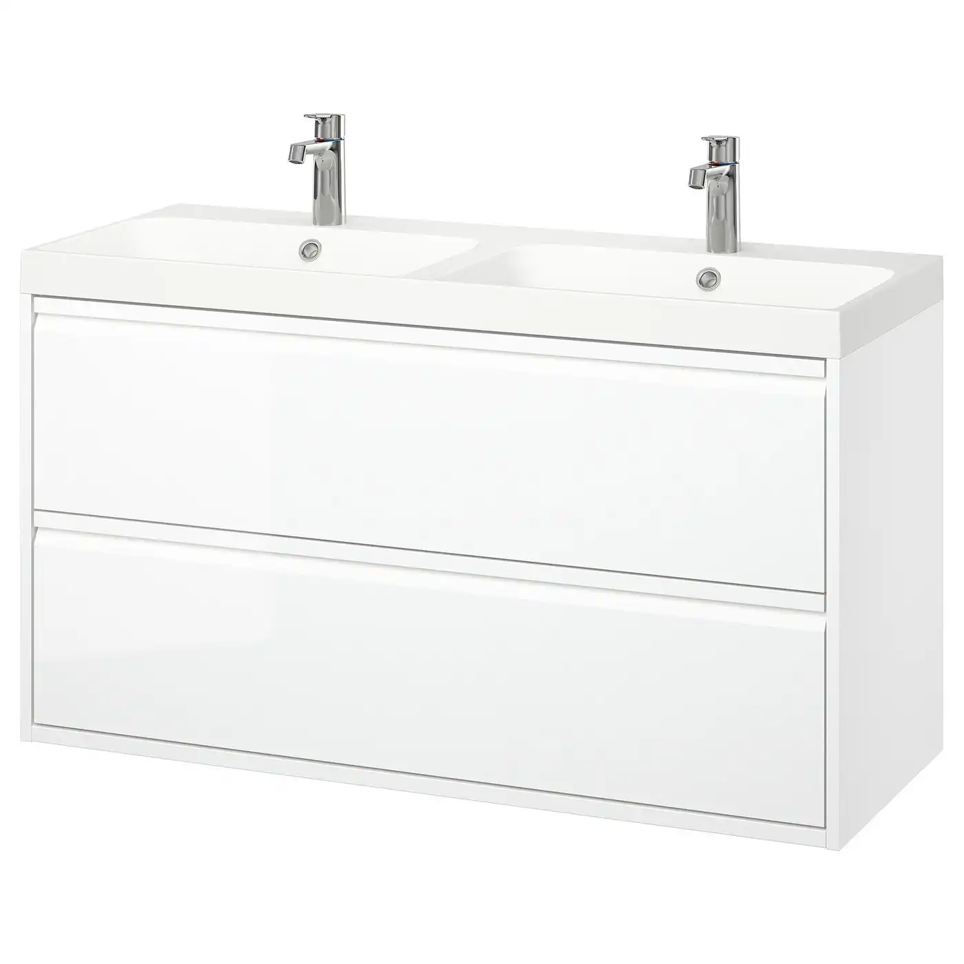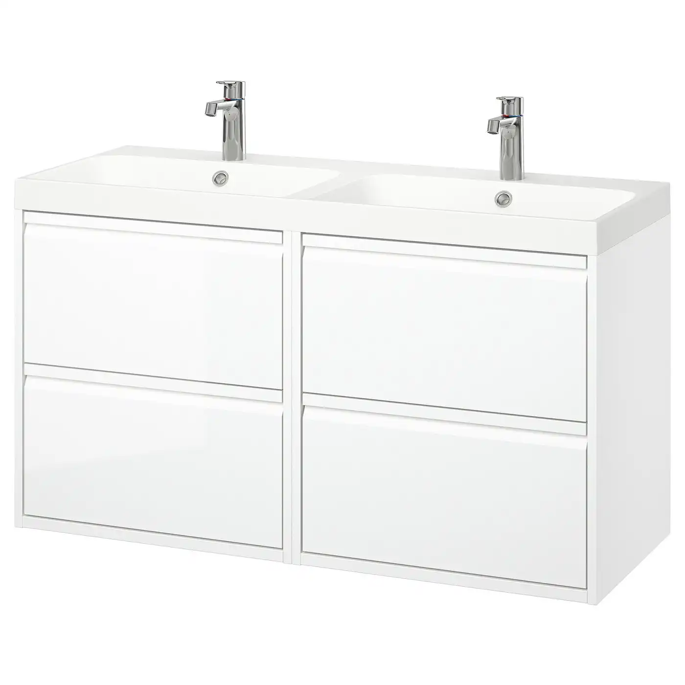 ÄNGSJÖN / BACKSJÖN Wash-stnd w drawers/wash-basin/taps - high-gloss white 120x48x69 cm