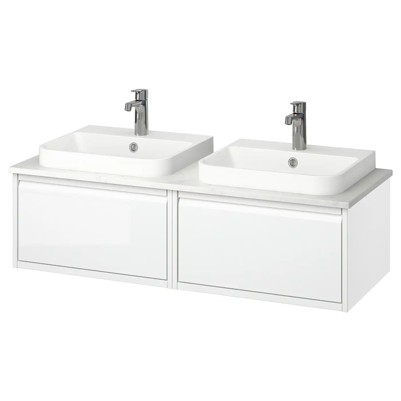 ÄNGSJÖN / BACKSJÖN Wash-stand/wash-basins/taps - high-gloss white/white marble effect 122x49x41 cm