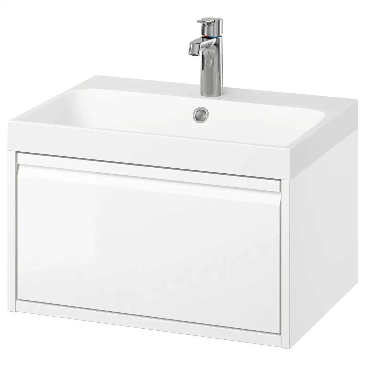 ÄNGSJÖN / BACKSJÖN Wash-stnd w drawer/wash-basin/tap - high-gloss white 60x48x39 cm