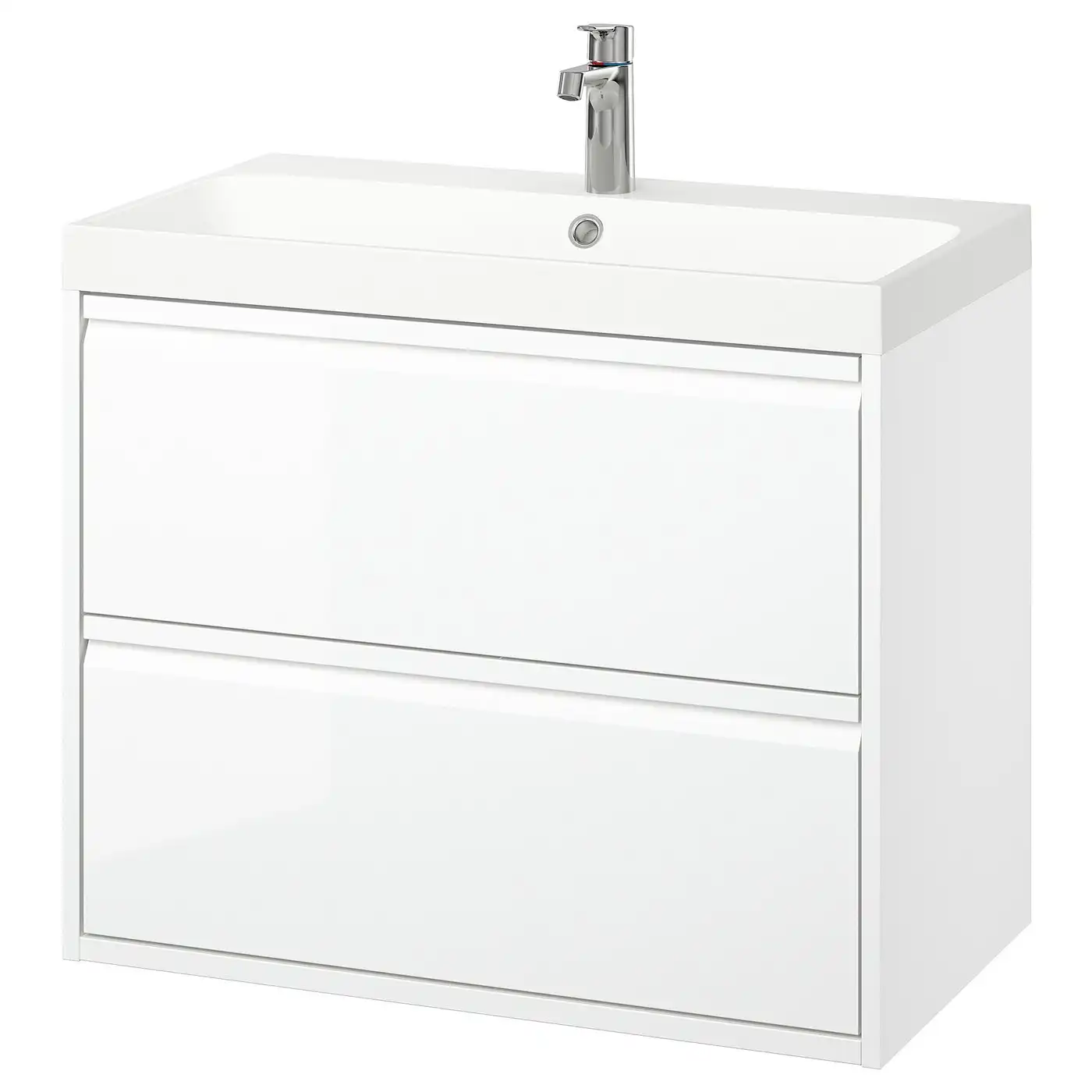 ÄNGSJÖN / BACKSJÖN Wash-stnd w drawers/wash-basin/tap - high-gloss white 80x48x69 cm