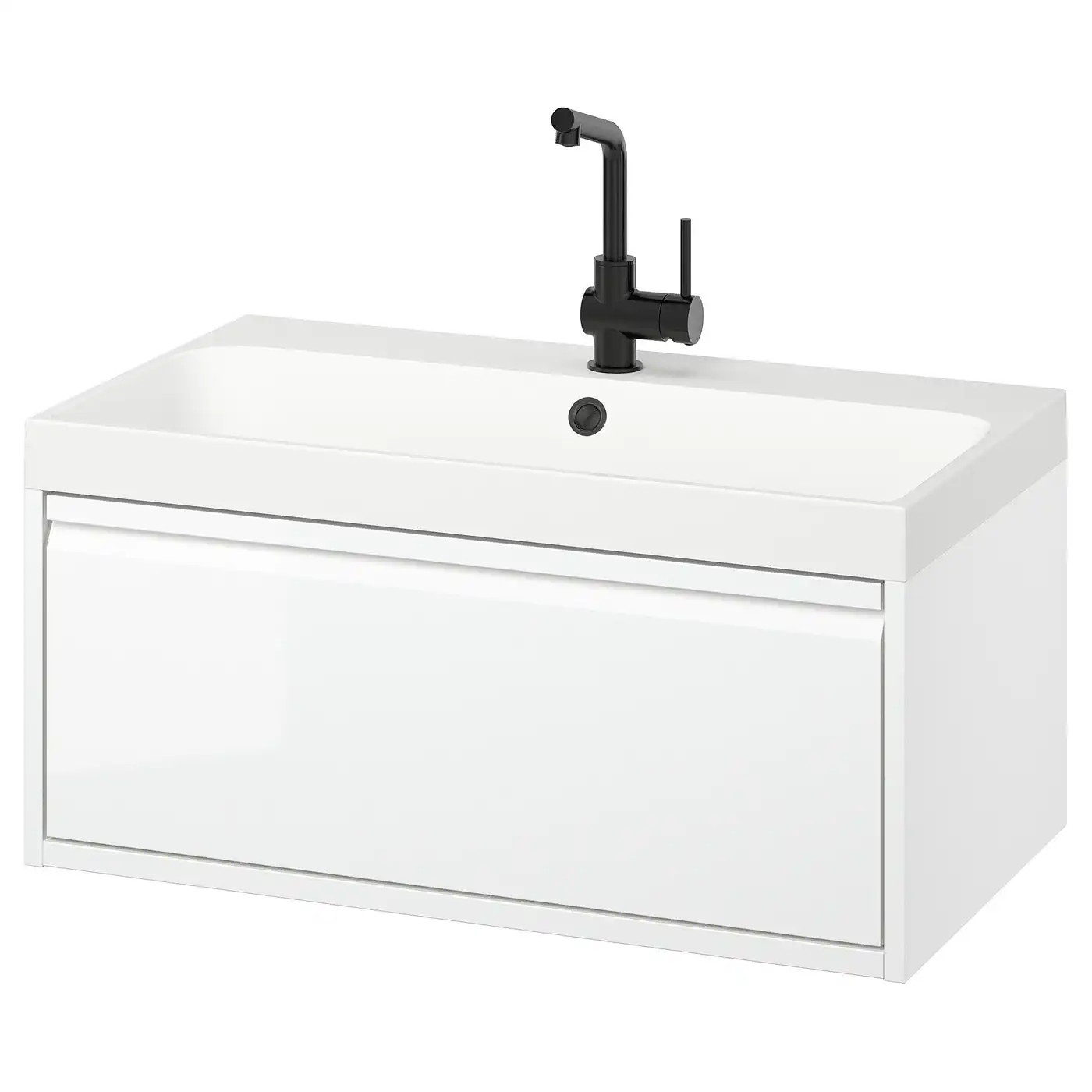 ÄNGSJÖN / BACKSJÖN Wash-stnd w drawer/wash-basin/tap - high-gloss white 80x48x39 cm