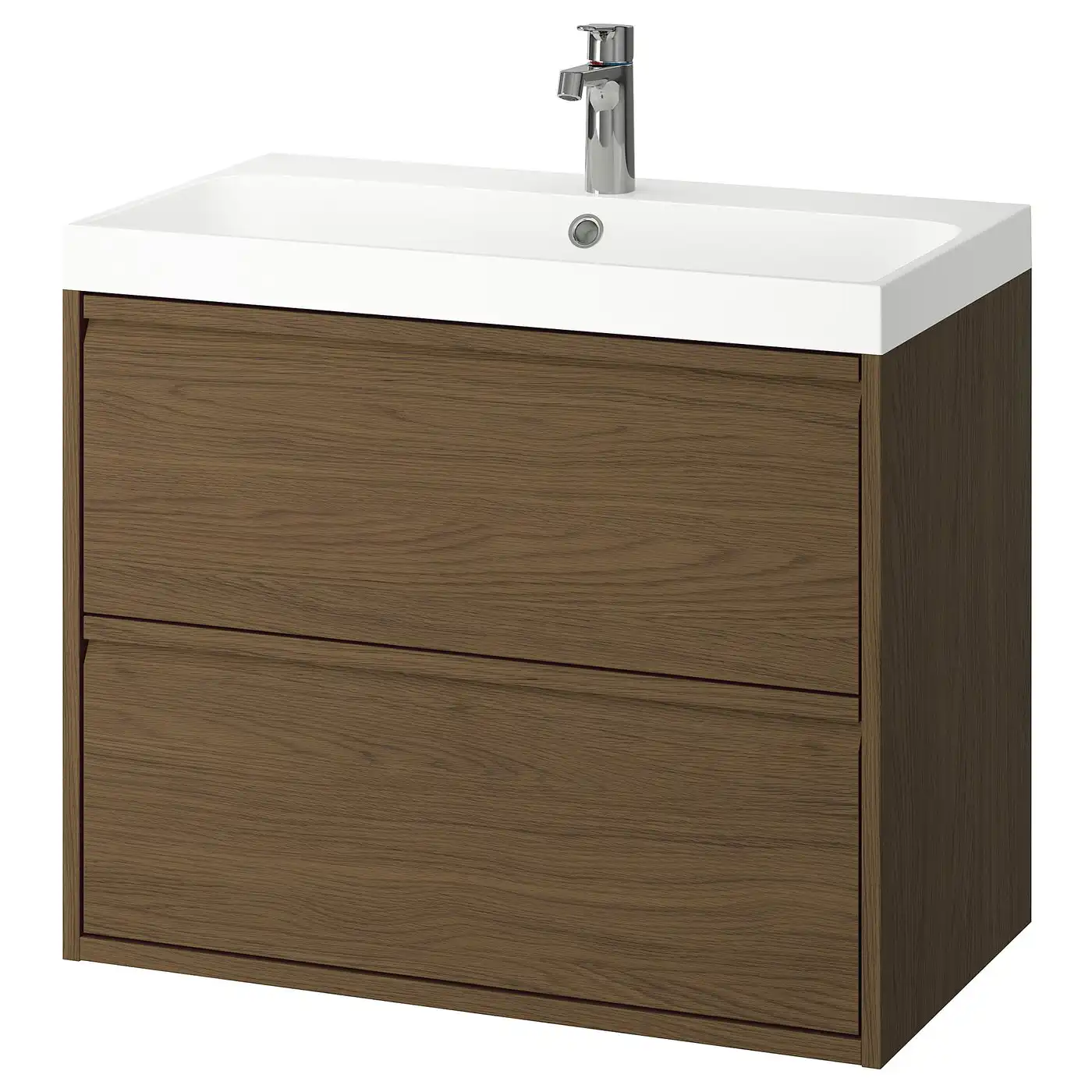 ÄNGSJÖN / BACKSJÖN Wash-stnd w drawers/wash-basin/tap - brown oak effect 80x48x69 cm
