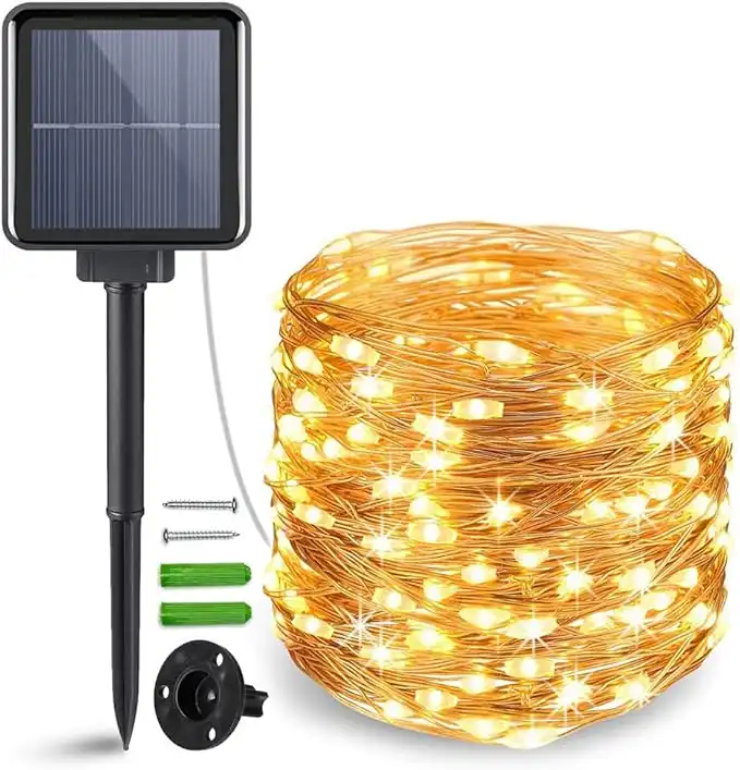 ANJAYLIA Solar String Lights Outdoor, 200 LED Fairy Lights Solar Powered with 8 Modes Waterproof Decorative Copper Wire Lights for Patio Garden Yard Trees Christmas Wedding Party, Warm White
