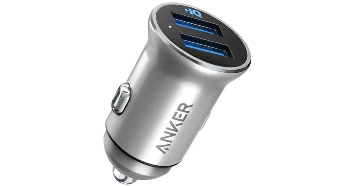 amazon.aeAnker Car Charger, Mini 24W 4.8A Metal Dual USB Car Charger, PowerDrive 2 Alloy Flush Fit Car Adapter with Blue LED, for iPhone 16/15/14/13/12, Samsung, Huawei, Xiaomi, Redmi, Vivo, Oppo and More
