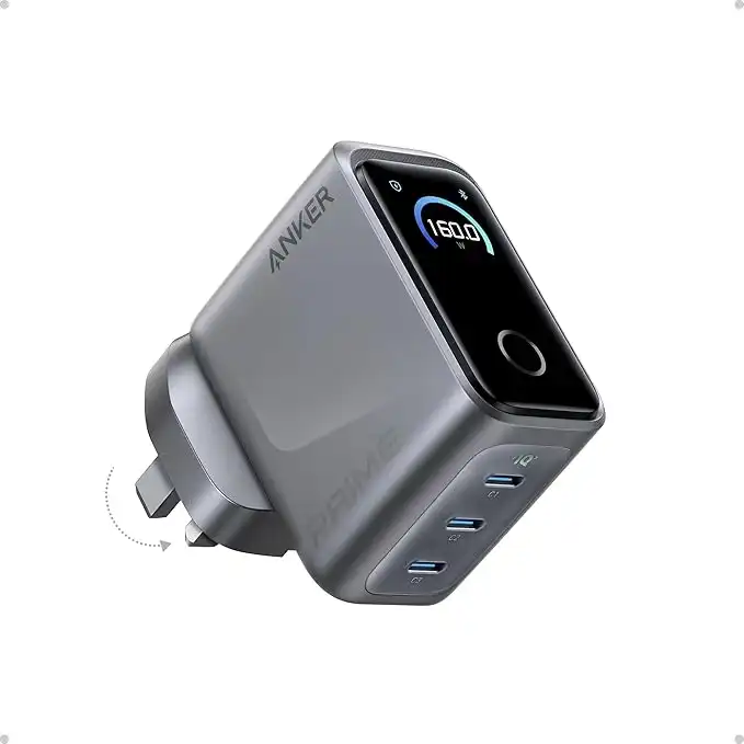 Anker Prime USB C Charger, 160W 3-Port Compact USB C GaN Charger, Smart Display and Touch Control, 140W Any-Single-Port Charging for MacBook, iPad, iPhone 17/16 Series, and More (Cable Not Included)