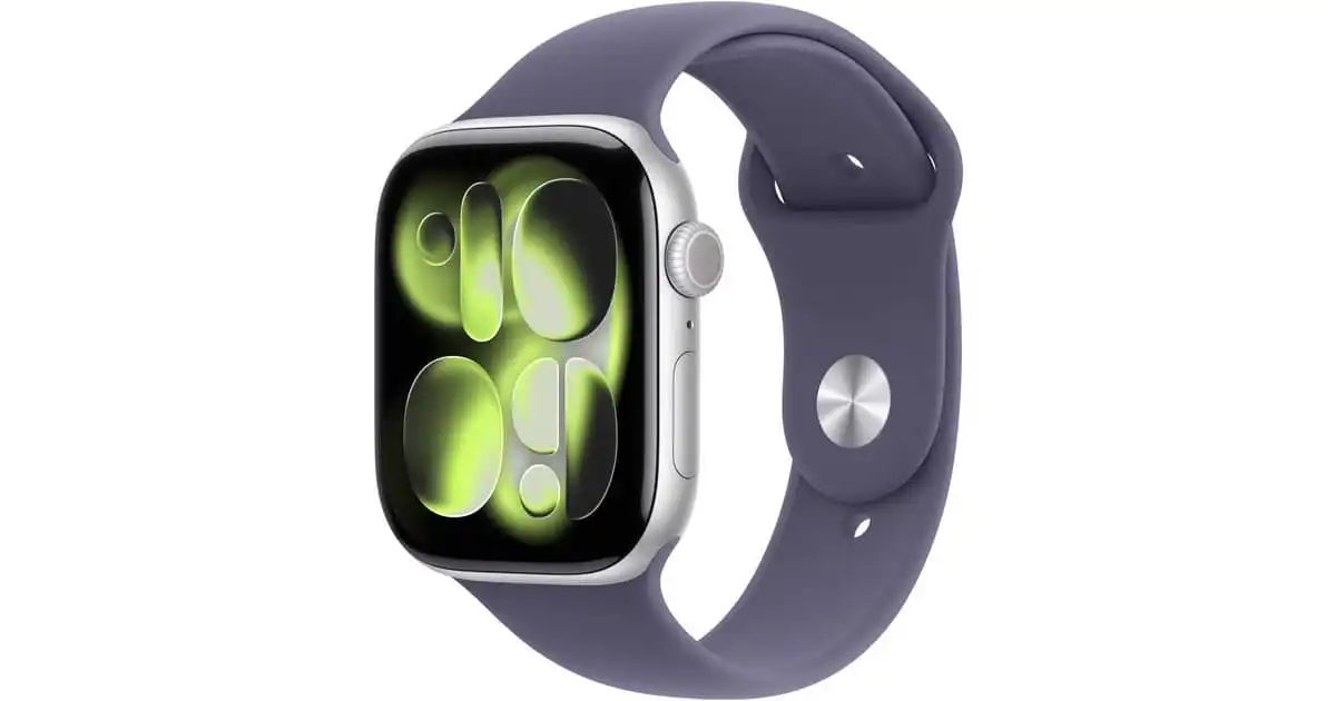 Apple Watch Series 11 GPS + Cellular, 46mm Silver Aluminum Case with Purple Fog Sport Band – S/M