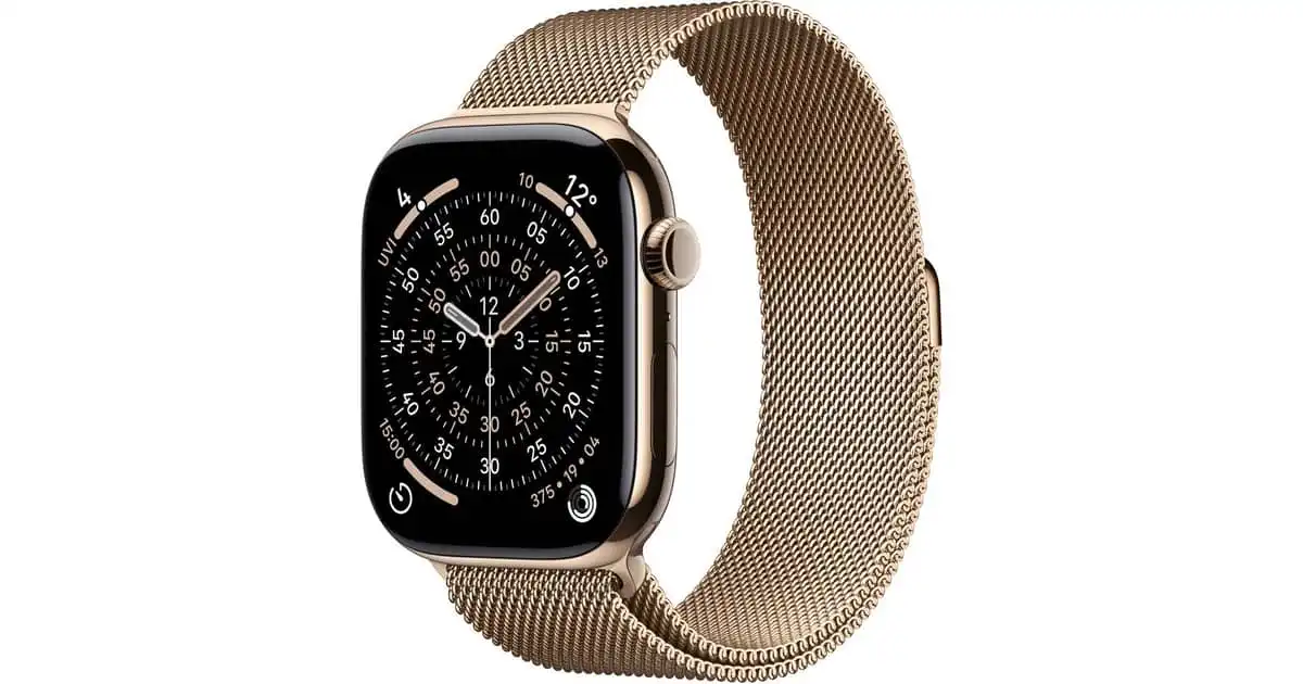 Apple Watch Series 11 GPS + Cellular, 46mm Gold Titanium Case with Gold Milanese Loop – M/L